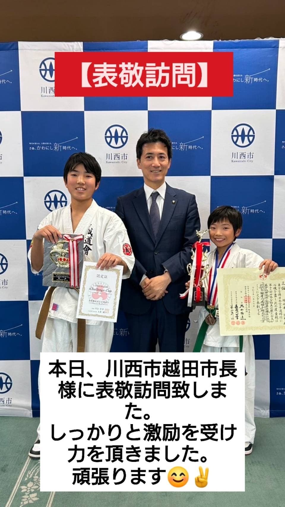全日本大会の権利獲得により川西市の名声を高めたとして越田市長に