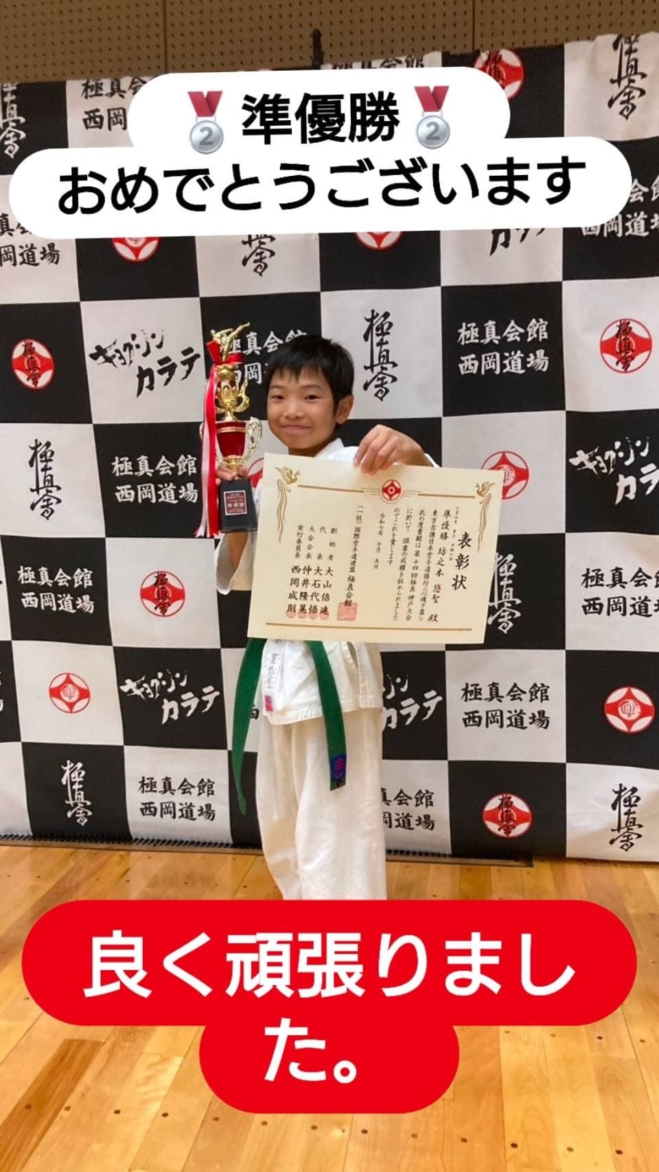 2025年 大会結果2024年 大会結果2023年 大会結果2022年 大会結果2021年 2025年1月26日(日)第4回全日本空手道ジュニア新人育成選手権大阪大会(真門塾主催) 坊之本寛悠 優勝 中学1年男子 坊之本悠聖 準優勝小学3年男子 千代原碧海 優勝小学2年男子 山崎太翔 準優勝小学1年男子 小川慶太 第3位小学6年男子 2025年2月23日(日)第6回オープントーナメント世界全極真近畿選抜大会(国際空手道連盟極真会館 世界全極真兵庫県米山道場主催) 玉置隼 第3位小学5年男子上級 第13回チャンピオンシップ出場権を獲得しました! 2025年3月15日(土)2024年度全日本ランキングファイナル(全日本ランキング委員会主催) 玉置隼 第3位小学5年男子上級 玉置直翔 ベスト8小学1年男子初級 2025年3月16日(日)第16回オープントーナメント極真サムライ杯四国春の陣(極真会館長谷川道場主催) 玉置隼 第3位 小学5年男子選抜 2025年5月11日(日)第7回滋賀びわこ魂杯空手道選手権大会(昇心塾主催) 玉置隼 ベスト8 小学6年男子上級 玉置直翔 準優勝小学2年男子初級第3回IBKA ALL JAPAN CHALLENGE CUPの出場権を獲得しました! 2025年5月25日(日)第15回極真会館難波宮杯空手道選手権大会(極真会館柳生道場主催) 吉田悠人 優勝 一般男子有段 2025年6月8日(日)第10回ガチンコカップ2025オープントーナメント烈士塾空手道選手権大会(烈士塾主催) 坊之本寛悠 優勝 中学2・3年男子中級 坊之本悠聖 第3位小学4年男子中級 2025年6月15日(日)第24回全日本空手道ジュニア新人育成選手権大会(真門塾主催) 坊之本寛悠 優勝 中学2年男子ミドルファースト 坊之本悠聖 優勝小学4年男子チャレンジセカンド 千代原碧海 優勝小学3年男子チャレンジセカンド 2025年7月6日(日)第8回オープントーナメント タフネスカップ空手道選手権大会(正道会館青雲会主催) 玉置隼 第3位 小学6年男子軽量チャンピオンクラス Adidas KARATE GRAND PRIX2025の出場権利獲得しました! 2025年7月27日(日)武神KARATE ALL JAPAN CUP 2025(武神主催) 玉置直翔 第3位 小学2年男子初級 2025年8月3日(日)第9回兵庫県空手道選手権大会(極真会館西岡道場主催) 山崎太翔 優勝 小学2年男チャレンジファースト 2025年8月11日(日)JKJO全関西空手道選手権大会2025(金森道場主催) 柴田大夢 優勝 高校男子70kg未満 2025年8月17日(日)第12回オープントーナメント世界全極真近畿大会第16,回オープントーナメント世界全極真兵庫カップ(世界全極真兵庫県米山道場主催) 玉置隼 第四位小学6年男子上級42kg未満 玉置直翔 準優勝小学2年男子中級 坊之本悠聖 第三位小学4年男子初級32kg未満 2025年8月31日(日)第25回全日本空手道ジュニア新人育成選手権大会(拳武会館主催) 坊之本寛悠 優勝中学2年男子ミドルセカンド 堀古悠真 第三位小学5年男子ミドルファースト 山崎太翔 準優勝小学2年男子チャレンジファースト 藤原凪生 準優勝小学2年男子ゼロルーキー 佐桑依知 第三位ゼロルーキー 2025年10月5日(日)第9回兵庫県空手道選手権大会第14回極真神戸大会(極真会館西岡道場主催) 玉置隼 優勝小学6年男子軽量選抜ファイナルカップ出場権を獲得しました! 坊之本悠聖 準優勝小学4年男子中級