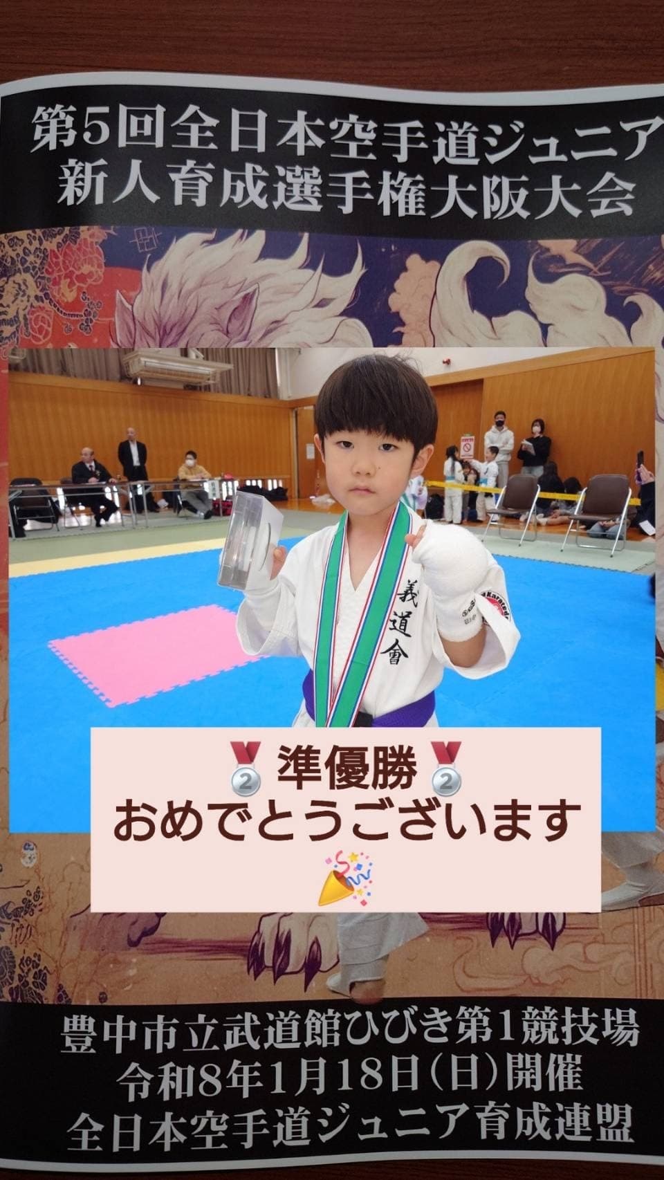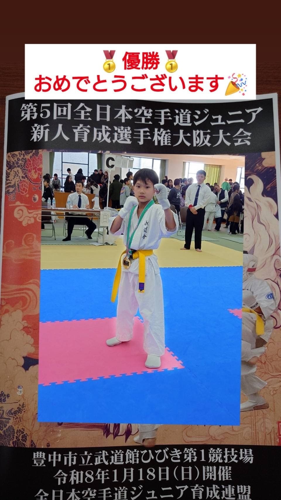 2026年 大会結果2025年 大会結果2024年 大会結果2023年 大会結果2022年 大会結果2021年 2026年1月18日(日)第5回全日本空手道ジュニア新人育成選手権大阪大会(真門塾主催) 千代原碧海 優勝 小学3年男子 田中条治 準優勝小学3年男子 山崎太翔 優勝小学2年男子 藤川怜那 準優勝小学1年女子 田中亮成 準優勝幼年年中 2026年1月18日(日)第3回IBKA All Japan Challenge Cup 選抜大会 (IBKA 大谷道場主催) 玉置直翔 第3位小学3年男子 IBKA ALL JAPAN CHALLENGE CUP出場権を獲得しました!